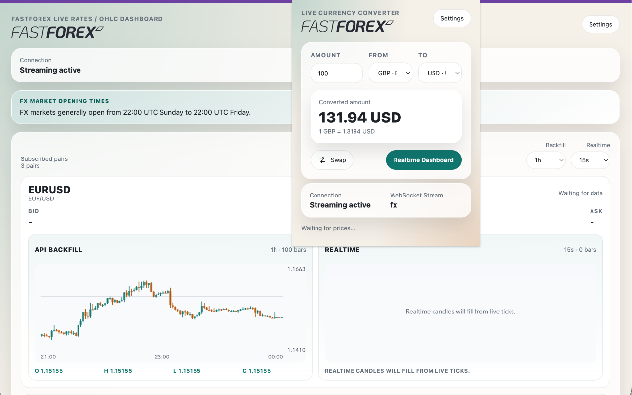 If you're already integrating fastFOREX into your application, you know how fast and reliable our data is. But sometimes you don't need a full integration — you just need to see the rates. Maybe you're debugging a payment flow, checking a quote before a meeting, or watching how a pair moves while you build.